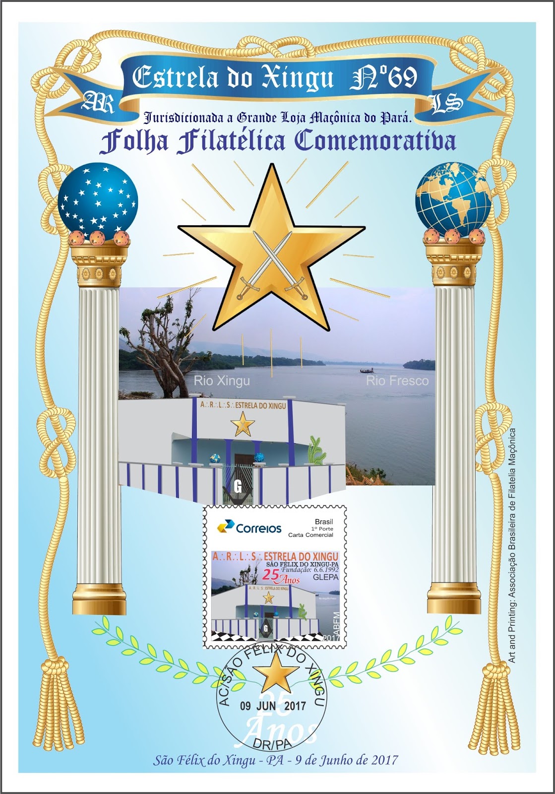 élix do Xingu, Tucumã e Ourilândia do Norte – todas, prósperas cidades interligadas pela PA 279, importante Rodovia do Estado do Pará. A ABFM – Associação Brasileira de Filatelia Maçônica em conjunto com os Correios lançaram dois selos comemorativos alusivos à data, e, assim entram para a história.O evento único no Estado Pará em uma só tacada colocou a Maçonaria Paraense